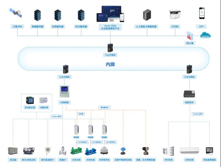 中央空調系統(tǒng)有冷熱源系統(tǒng)和空氣調節(jié)系統(tǒng)(末端風系統(tǒng))組成在相同的客觀環(huán)境下,末端設備的啟停數(shù)量和風溫、風速的設定決定了中央空調系統(tǒng)整體電耗水平。負荷調峰-中央空調AI調優(yōu):結合人工智能算法,實時預測冷/熱負荷,及時調整主機運行參數(shù),水泵調控參數(shù)、冷卻塔風機控制參數(shù),使系統(tǒng)運行效率優(yōu),結合剛性與柔性調控策略,降低電負荷,避免超需量。