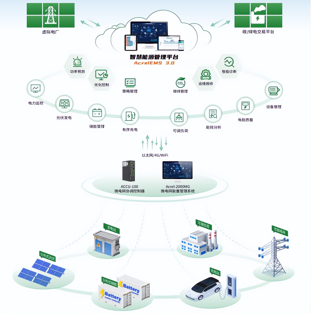 在"雙碳"目標指引下,零碳園區(qū)建設成為推動經濟社會綠色轉型的關鍵路徑。其核心價值在于系統(tǒng)破解經濟增長與碳排放的矛盾,通過能源結構轉型、全產業(yè)鏈脫碳、綠色貿易壁壘應對等多元路徑,實現(xiàn)經濟與環(huán)境協(xié)同發(fā)展。安科瑞能碳管控平臺通過"監(jiān)測-核算-優(yōu)化"一體化解決方案,集成能源管理、微電網調控、虛擬電廠等創(chuàng)新技術,為園區(qū)提供從碳核算到智能調度的全流程支持,助力實現(xiàn)綠電自用率提升與運營成本優(yōu)化,為零碳目標落地提供可復制的技術支撐與實踐樣板。